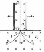 ,假若使一束质子、反质子、α粒子和反α粒子组成的射线,以相同的速度通过OO'进入匀强磁场B2而形成的4条径迹,则:(
