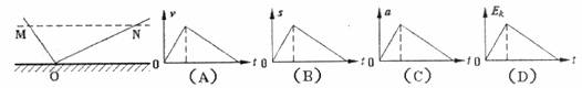 7.如图所示,光滑轨道MO和ON 底端对接且ON=2MO,M、N两点高度相同,小球自M点由静止自由滚下,忽略小球经过O 点时的机械能损失,以v、s、a、Ek分别表示小球的速度、位移、加速度和动能四个物理量的大小.下列图象中能正确反映小球自M点到N点运动过程的是 ( )