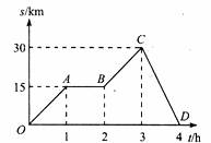 9.如图是一辆汽车做直线运动的s-t图象,对线段OA、AB、BC、CD所表示的运动,下列说法正确的是 ( )