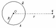 11.(9分)如下图中,实心金属球A半径为R,带电量为Q,点电荷B带电量为q。B与A球间的距离为r. 当B不存在而只有A存在且达到静电平衡状态时,电荷Q在球心O处的电场强度等于________.当点电荷B也同时存在并达到静电平衡时,球心O处的电场强度等于________,金属球上的电荷在球心O处产生的场强的大小等于________.