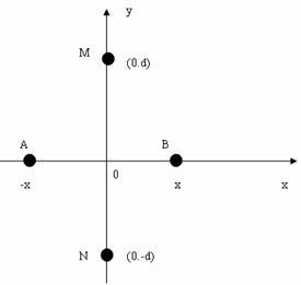 15.(10分) 两个电荷均为+Q的带电金属小球M、N(可视为点电荷)固定在如图所示的坐标系的y轴上。现有一个电荷量为+q的小球(重力不计,可视为点电荷)以某一初速度从y轴的左边很远处沿x轴飞来。(1)求小球运动到x轴上点A(-x,0)处受到的电场力F。(2)若取无限处电势为零,M、N在x轴上任意点的电势可表示为Φx=c/(d2+x2)1/2(其中c为正的常数)。要使小球能通过y轴右方点B(x,0)处,则初速度vO应满足什么条件?(M、N的坐标在图中已标出)