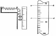 用如图所示的装置测定弹簧的劲度系数,被测弹簧一端固定于A点,另一端B用细绳绕过定滑轮挂钩码,旁边附有一竖直刻度尺,当挂两个钩码时,绳上一定点P对应刻度如下图ab虚线所示,再增加一个钩码后,P点对应刻度如图cd虚线所示。已知每个钩码质量均为