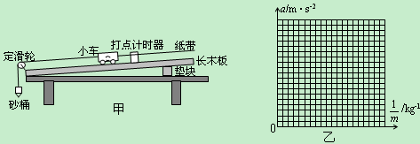 12.(8分)如图甲所示,为“探究加速度与质量的关系”实验的装置图,砂桶质量较小,绳上的拉力可认为等于砂桶的重力。保持砂桶质量不变,改变小车的质量,得到数据如下表所示。