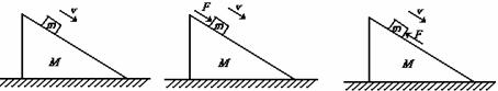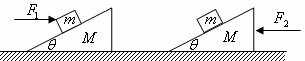 18.如图所示,质量M的斜面体置于水平面上,其上有质量为m的小物块,各接触面均无摩擦。第一次将水平力