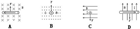 1.如下图所示,标出了磁感应强度B的方向,通电直导线中电流I的方向,以及通电直导线所受安培力F的方向,其中正确的是 ( )