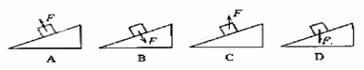 3.物块静止在固定的斜面上,分别按图示的方向对物块施加大小相等的力F,A中F垂直于斜面向上。B中F垂直于斜面向下,C中F竖直向上,D中F竖直向下,施力后物块仍然静止,则物块所受的静摩擦力增大的是( )