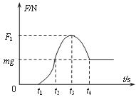 9.利用传感器和计算机可以研究力的大小变化的情况,实验时让某消防队员从平台上跳下,自由下落H后双脚触地,他顺势弯曲双腿,他的重心又下降了h ,最后停止。计算机显示消防队员受到地面支持力F随时间变化的图象如图所示。根据图象提供的信息,以下判断正确的是( )