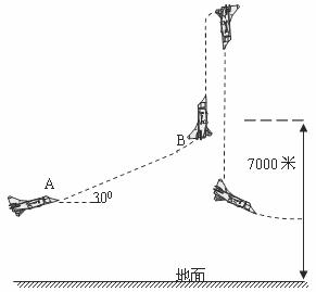 14.(10分)为了使航天员能适应在失重环境下的工作和生活,国家航天局组织对航天员进行失重训练。故需要创造一种失重环境;航天员乘坐到民航客机上后,训练客机总重5×104kg,以200m/s速度沿300倾角爬升到7000米高空后飞机向上拉起,沿竖直方向以200m/s 的初速度向上作匀减速直线运动,匀减速的加速度为g,当飞机到最高点后立即掉头向下,仍沿竖直方向以加速度为g加速运动,在前段时间内创造出完全失重,当飞机离地2000米高时为了安全必须拉起,后又可一次次重复为航天员失重训练。若飞机飞行时所受的空气阻力f=Kv(k=900N・s/m),每次飞机速度达到350m/s 后必须终止失重训练(否则飞机可能失速)。