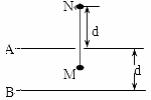 24.(18分)带有等量异种电荷的两个金属板A和B水平放置,相距为d(d远小于板的长和宽),一个带正电的油滴M悬浮在两板的正中央,处于平衡,油滴的质量为m,带电量为q,如图所示。在油滴的正上方距A板d处有另一个质量也为m的带正电的油滴N,油滴N由静止释放后,可以穿过A板上的小孔,进入两金属板间与油滴M相碰,并立即结合成大油滴(设在碰撞瞬间不考虑重力.电场力的影响)整个装置处于真空环境中,如不计油滴M、N间的库仑力和万有引力以及金属板的厚度,要使油滴N能与M相碰,且结合成大油滴(油滴可视为质点)又不至于与金属板B相碰。 求