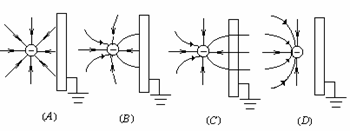 10.把一个带负电的球放在一块接地的金属板附近,正确的电场的电场线图是下列图中的