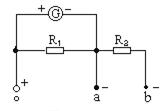 16.一只表头的量程为0―100μA,内阻R=100Ω,现将表头改装成电流,电压两用表,如图所示,R1=100Ω,R2=1kΩ