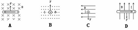 4.如下图所示,标出了磁感应强度B的方向,通电直导线中电流I的方向,以及通电直导线所受安培力F的方向,其中正确的是 ( )