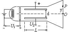 12.如图所示是示波器原理图。电子经电压为U1的电场加速后,射入电压为U2的偏转电场,离开偏转电场后电子打在荧光屏上的P点,离荧光屏中心O的偏转距离为y。我们把单位偏转电压引起的偏转距离(y/U2)称为示波器的灵敏度。则下列哪些方法可以提高示波器的灵敏度