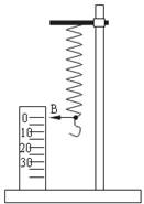 15.如图所示,一根轻弹簧,其自由端B在未悬挂重物时,正对刻度尺的0刻度线,挂上100N重物时,正对刻度尺