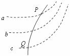 7.如图所示,虚线a、b、c代表电场中的三个等势面,相邻等势面之间的电势差相等,即Uab=Ubc,实线为一带正电的质点仅在电场力作用下通过该区域时的运动轨迹,P、Q是这条轨迹上的两点,据此可知 ( )