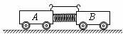 2.如图所示,在水平光滑桌面上有两辆静止的小车A和B,质量之比mA∶mB = 3∶1。将两车用细线拴在一起,中间有一个被压缩的弹簧。烧断细线后至弹簧恢复原长前的某一时刻,两辆小车的