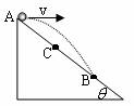 5. 如图所示,在斜面顶端的A点以速度v平抛一小球, 经t1时间落到斜面上B点处,若在A点将此小球以速度0.5v水平抛出,经t2落到斜面上的C点处,以下判断正确的是