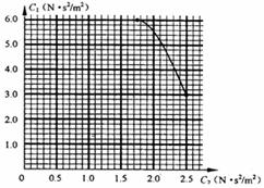 13.(10分)翼型飞行器有很好的飞行性能。其原理是通过对降落伞的调节,使空气升力和空气阻力都受到影响。同时通过控制动力的大小而改变飞行器的飞行状态。已知:飞行器的动力F始终与飞行方向相同,空气升力F1与飞行方向垂直,大小与速度的平方成正比,F1=C1v2;空气阻力F2与飞行方向相反,大小与速度的平方成正比,F2=C2v2。其中C1、C2相互影响,可由运动员调节,满足如图所示的关系。飞行员和装备的总质量为