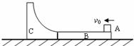 圆弧槽C与长木板接触但不连接,圆弧槽的下端与木板的上表面相平,B、C静止在水平面上。现有滑块A以初速度v0从右端滑上B并以v0/2滑离B,恰好能到达C的最高点。A、B、C的质量均为m,试求