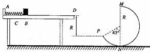 16.(19分)如图所示,水平桌面上有一轻弹簧,左端固定在A点,自然状态时其右端位于B点。D点位于水平桌面最右端,水平桌面右侧有一竖直放置的光滑轨道MNP,其形状为半 径R=