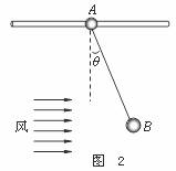 4.如图 2 所示,水平细杆上套一环 A ,环 A 与球 B 间用一轻质绳相连,质量分别为 mA 、mB,由于 B 球受到风力作用,A 与 B 球一起向右匀速运动。已知细绳与竖直方向的夹角为 θ 。则下列说法中正确的是( )