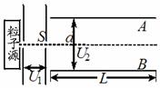 6.如图所示,一个带电粒子,从粒子源飘入(初速度很小,可忽略不计)电压为U1的加速电场,经加速后从小孔S沿平行金属板A、B的中心线射入,A、B板长为L,相距为d,电压为U2。则带电粒子能从A、B板间飞出,应该满足的条件是 ( )