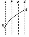 7.如图所示,一带电粒子在电场中沿曲线AB运动,从B点穿出电场,a、b、c、d为该电场中的等势面,这些等势面都是互相平行的竖直平面,不计粒子所受重力,则( )