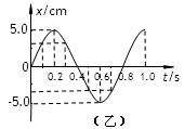 5.下图(甲)所示为以O点为平衡位置、在A、B两点间做简谐运动的弹簧振子,图(乙)为这个弹簧振子的振动图象,由图可知下列说法中正确的是( )