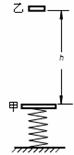 18.(14分)质量 m=1.0kg的甲物体与竖直放置的轻弹簧的上端连接,弹簧下端固定在地面上,如图所示。质量m=1.0kg的乙物体从甲物体正上方,距离甲物体h=0.40m处自由落下,撞在甲物体上在极短的时间内与甲物体粘在一起(不再分离)向下运动。它们到达最低点后又向上运动,上升的最高点比甲物体初始位置高H=0.10m。已知弹簧的劲度系数k=200N/m,且弹簧始终在弹性限度内,空气阻力可忽略不计,重力加速度g取10m/s2。求: