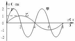 D.若对两振子分别加上一个周期为4s的外驱动力,则乙的振幅 明显增大
