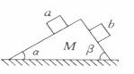 2.如图所示,一质量为M的楔形木块放在水平桌面上,它的顶角为900,两底角为a和β。ab为两个位于斜面上质量均为m的小木块.已知所有接触面都是光滑的.现使a、b同时沿斜面下滑,则下列说法正确的是