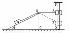 =300的固定的光滑斜面上,而穿过竖直杆PQ的物块M可沿杆无摩擦地下滑,M=