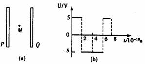11.如图(a)所示,两个平行金属板P、Q竖直放置,两板间加上如图(b)所示的电压.t=0时,Q板比P板电势高5V,此时在两板的正中央M点有一个电子,速度为零,电子在电场力作用下运动,使得电子的位置和速度随时间变化.假设电子始终未与两板相碰.在0<t<8×