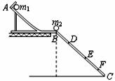 9.如图所示,质量为m1的物体A经跨过定滑轮的轻绳与质量为M的箱子B相连,箱子底板上放一质量为m2的物体C。已知