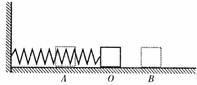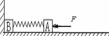 (2)(9分)如图所示,光滑水平面上,轻弹簧两端分别拴住质量均为m的小物块A和B,B物块靠着竖直墙壁。今用水平外力缓慢推A,使A、B间弹簧压缩,当压缩到弹簧的弹性势能为E时撤去此水平外力,让A和B在水平面上运动.求: