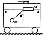18.如下图所示,小车向右做匀加速直线运动的加速度大小为a,bc是固定在小车上的水平横杆,物块M穿在杆上,M通过细线悬吊着小铁球m,M、m均相对小车静止,细线与竖直方向的夹角为θ,若小车的加速度逐渐增大到