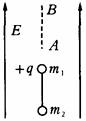 20.如下图所示,质量为m1、带有正电荷q的金属小球和质量为m2、不带电的小木球之间用绝缘细线相连后,置于竖直向上、场强为E、范围足够大的匀强电场中,两球恰能以速度v匀速竖直上升.当小木球运动到A点时细线突然断开,小木球运动到B点时速度为零,则( )