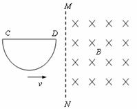 21.如下图所示,一导线弯成半径为a的半圆形闭合回路。虚线MN右侧有磁感应强度为B的匀强磁场。方向垂直于回路所在的平面。回路以速度v向右匀速进入磁场,直径CD始络与MN垂直。从D点到达边界开始到C点进入磁场为止,下列结论正确的是( )