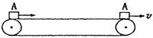 6.如下图所示的水平传送带静止时,一个小物块A以某一水平初速度从传送带左端冲上传送带,然后从传送带右端以一个较小的速度v滑出传送带;若传送带在皮带轮带动下运动时,A物块仍相同的水平速度冲上传送带,且传送带的速度小于A的初速度,则 ( )