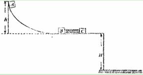 12.(20分)如图所示,一轻质弹簧的一端固定在滑块B上,另一端与滑块C接触但未连接,该整体静止放在离地面高为H的光滑水平桌面上。现有一滑块A从光滑曲面上离桌面h高处由静止开始下滑下,与滑块B发生碰撞(时间极短)并粘在一起压缩弹簧推动滑块C向前运动,经一段时间,滑块C脱离弹簧,继续在水平桌面上匀速运动一段时间后从桌面边缘飞出。已知