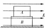 2.如图所示,叠放在一起的A、B两绝缘小物块放在水平向右的匀强电场中,其中B带正电q而A不带电,它们一切沿绝缘水平面以某一速度匀速运动。现突然使B带电量消失,同时A带上正电q,则A、B的运动状态可能为 ( )