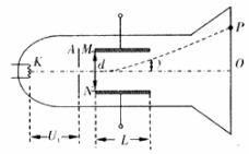 17.(10分)下图为一真空示波管的示意图,电子从灯丝K发出(初速度可忽略不 计),经灯丝与A板间的电压U1加速,从A板中心孔沿中心线KO射出,然后进入两块平行金属板M、N形成的偏转电场中(偏转电场可视为匀强电场),电子进入M、N间电场时的速度与电场方向垂直,电子经过电场后打在荧光屏上的P点,已知M、N两板间的电压为U2,两板间的距离为d,板长为L,电子的质量为m,电荷量为e,不计电子受到的重力及他们之间的相互作用力。