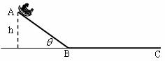 16.(12分)在海滨游乐场有一种滑沙的娱乐活动,如图所示,人坐在滑板上从斜坡的高处A点由静止开始下滑,滑到斜坡底部B点后沿水平滑道再滑行一段距离到C点停下来,斜坡滑道与水平滑道间是平滑连接的,滑板与两滑道间的动摩擦因数均为μ=0.5,不计空气阻力,重力加速度