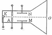 16.如图所示为一种测量电子比荷的仪器的原理图,其中阴极K释放电子,阳极A是一个中心开孔的原形金属板在AK之间加一定的电压。在阳极右侧有一堆平行正对待电金属板M、N,板件存在方法竖直向上的匀强电场,O点为荧光屏的正中央位置,且K与O的连线与M、N板间的中心线重合。电子从阴极逸出被AK间的电场加速后从小孔射出,沿KO连线方向射入M、N两级板间,已知电子从阴极逸出时的初速度、所受的重力及电子之间的相互作用均可忽略不计,在下列过程中,电子均可打到荧光屏。