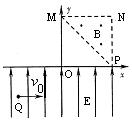 水平向右射出,经坐标原点O处射入第I象限,最后以垂直于PN的方向射出磁场。已知MN平行于x轴,N点的坐标为(2h,2h),不计粒子的重力,求: