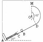 斜面上,轻弹簧一端固定在A点,自然状态时另一端位于B点,斜面上方有一半径R=