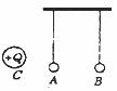 7.如下图所示,A、B为两个用绝缘细线悬挂起来的质量相同的带电小球,左边放一个带正电的球C时,两悬线都保持竖直方向(两线长度相同).若把C球移走,两球没有发生接触,那么右面四个图中,哪个图可以正确表示A、B两球的位置