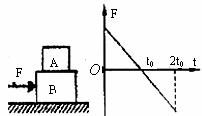11.A、B两物体叠放在一起,放在光滑的水平面上,从静止开始受到一变力的作用,该力与时间的关系如图所示,A、B始终相对静止,则在0-2t0时间内,下列说法不正确的是( )