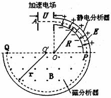 (1)为了使位于A处电量为q、质量为m的离子,从静止开始经加速电场加速后沿图中圆弧虚线通过静电分析器,加速电场的电压U应为多大?