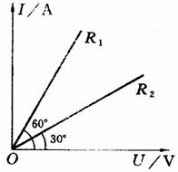 6.两电阻R1、R2中的电流I和电压U的关系图线如图所示,可知两电阻的大小之比R1:R2等于 ( )